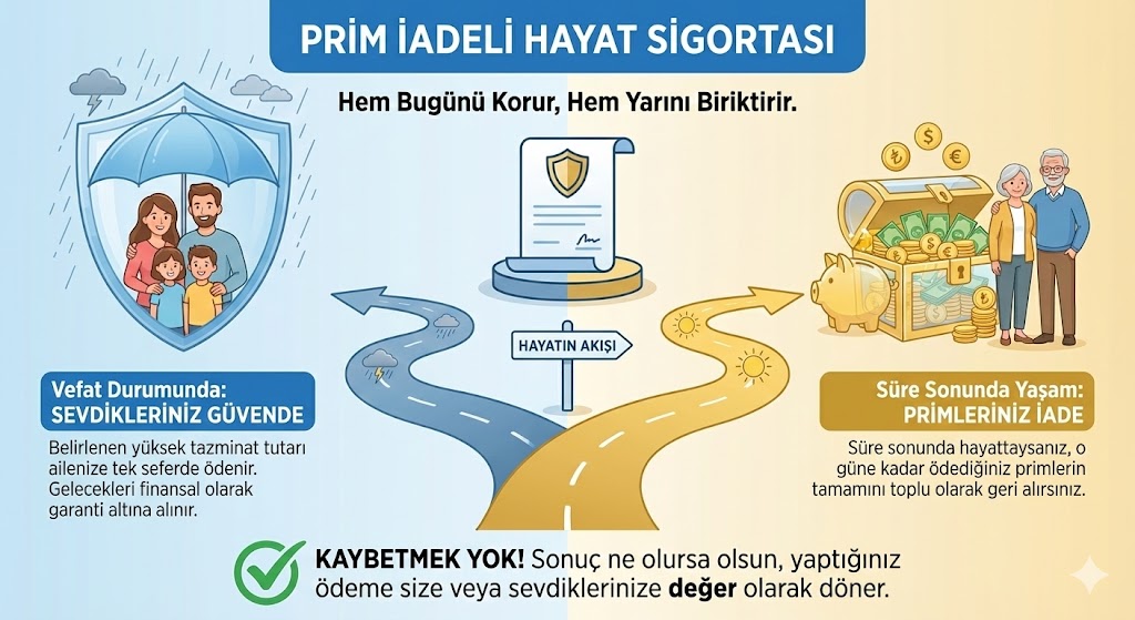 Prim İadeli Hayat Sigortası Nedir? Prim iadeli hayat sigortası, sigortalının hayatını güvence altına almanın y